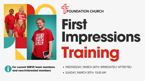 You are a valuable member of Foundation Church! As a SERVE Team member on our First Impressions Team, you are our stand out team for returning and first time guests! You make a BIG impact and we want to ensure you are familiar and comfortable with your role.